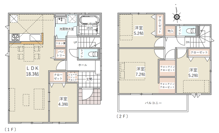 パントリーや洗面脱衣室のリネン庫もあり♪