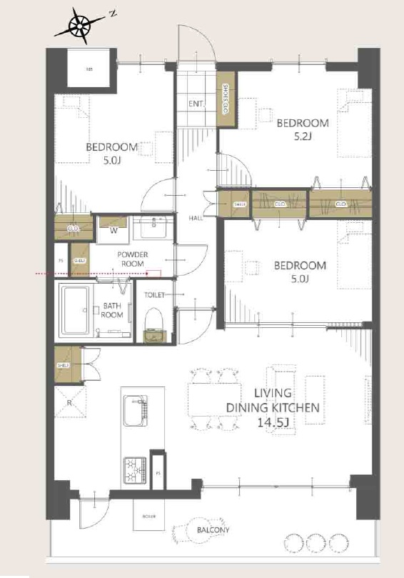 | 主要採光 | 南東向 | バルコニー | 南西向11.44㎡ |